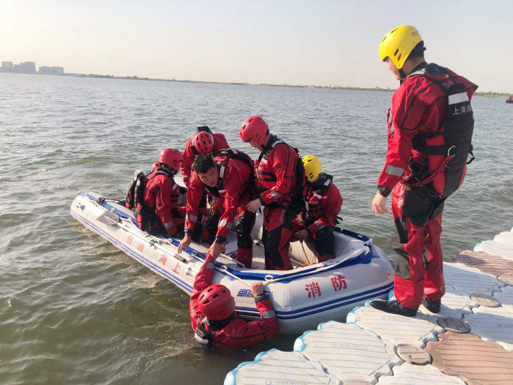 ▲浦东新区消防救援支队临港大队滴水湖消防救援站开展抢险训练
