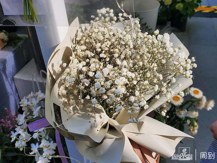 灿烂的各色进口满天星15元;黑色芯太阳花15元一支,黄色芯25元;还有19.9元一束的助农鲜花……