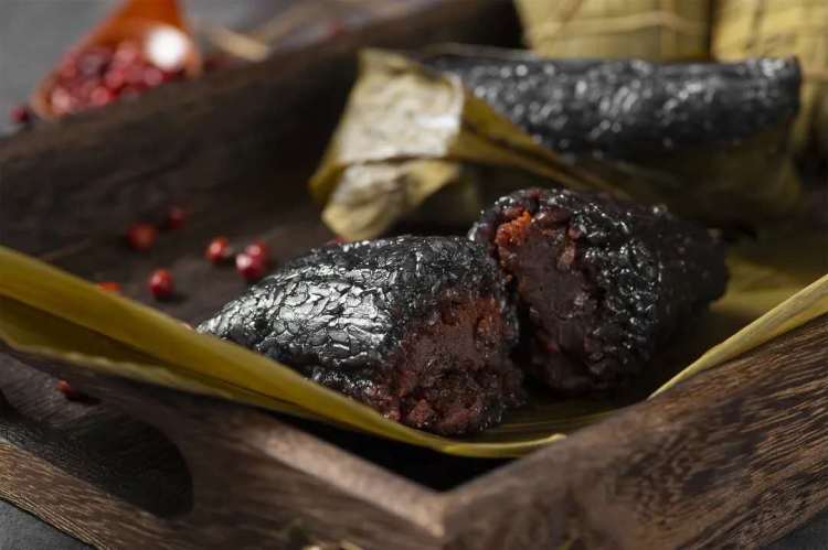 此外,今年新雅还特别推出了新品大师手工乌米细沙粽。取新鲜山中采摘的乌饭叶捣碎取汁,浸润糯米,包入大红袍红豆铲制的豆沙。煮熟剥开粽叶裹挟着山间草木气息,那乌黑到闪现光泽的乌糯米,颗颗劲道,黏糯不烂。