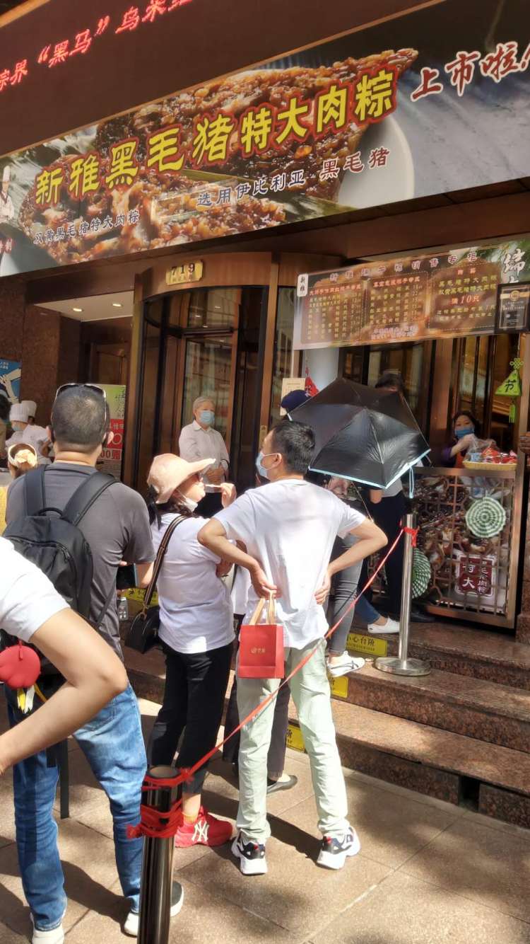 最近,新雅粤菜馆门口的端午粽销售柜台又排队了。