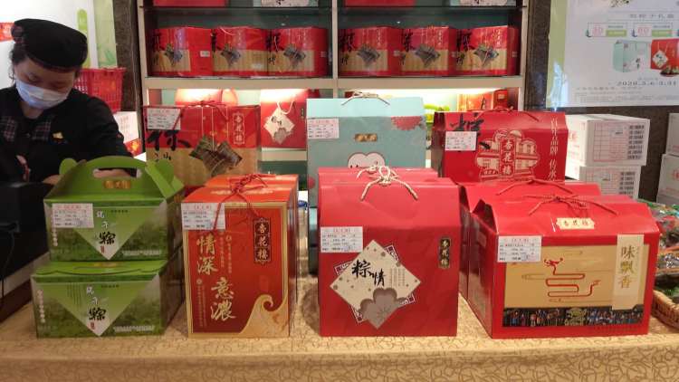 8款大师手作网红粽子和6款真空包装粽子同柜销售,吸引了不少往来行人。