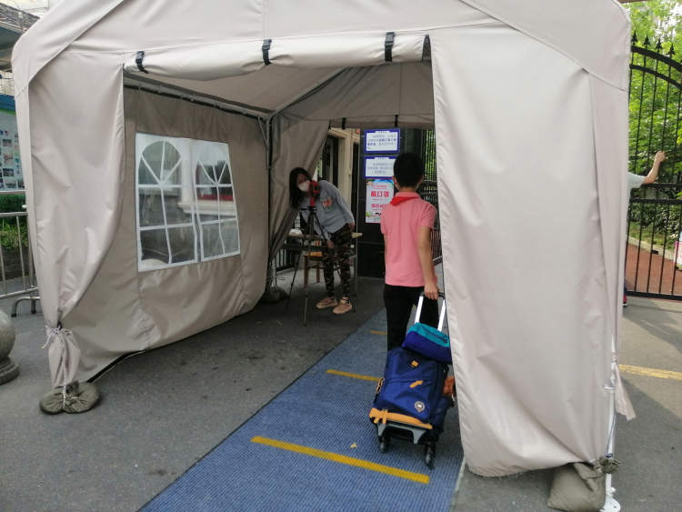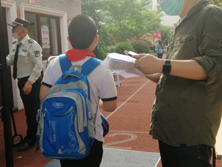虹四五年级:“非常期待能重新见到老师和熟悉的小伙伴!”丨返校开学日 徐斌忠 2020-5-18 来源:周到上海 今天(18日),上海中小学又有5个年级进入地面课堂啦!今天新开学的年级分别有:小学四、五年级,预初、初一和高一。至此,上海中学所有年级全部开学复课。而小学今天迎来第一批开学的孩子,6月2日进入全面开学。新闻晨报•周到记者今天现场蹲点,给大家带来第三波的开学资讯。 🏫:虹口四中心小学 虹口四中心小学门口,学生在一米线前放慢脚步。 学生进入校门处的测温区。 学生来到校门前,老师便要求学生取出健康信息登记表。 五(七)班一位孩子的爸爸送完孩子,在校门口逗留,没用马上离去。这位不愿透露姓名的爸爸说,儿子今天是第一个到校。最晚儿子很兴奋,睡得很晚,早晨起得很早,非常期待能重新见到老师和熟悉的小伙伴。 来源:周到上海 作者:徐斌忠 赞一个 (0)
