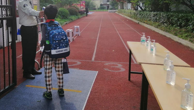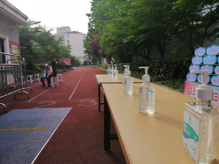 虹口四中心:7点20分到了两名小学生!入校前连续两次测温!丨返校开学日 徐斌忠 2020-5-18 来源:周到上海 今天(18日),上海中小学又有5个年级进入地面课堂啦!今天新开学的年级分别有:小学四、五年级,预初、初一和高一。至此,上海中学所有年级全部开学复课。而小学今天迎来第一批开学的孩子,6月2日进入全面开学。新闻晨报•周到记者今天现场蹲点,给大家带来第三波开学资讯。 🏫:虹口四中心小学 虹口四中心小学门口设置了测温的帐篷通道,地面有一米线标志。 进入校门,两张长条桌上摆放着8瓶洗手凝液。 现在是早晨7点20分,已经有两位小学生早早到校了。 小朋友从测温区通过后,进入校门,学校保安再用测温枪测温。 来源:周到上海 作者:徐斌忠 赞一个 (0)