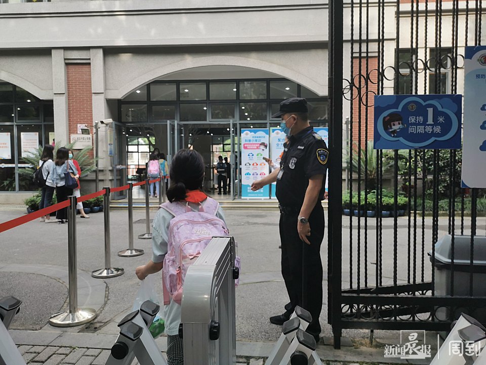 学校采取分年级错时进校,五年级07:55–08:10、四年级08:10–08:25进校。学生入校时保持1米以上,可以参考地面隔离线。↓