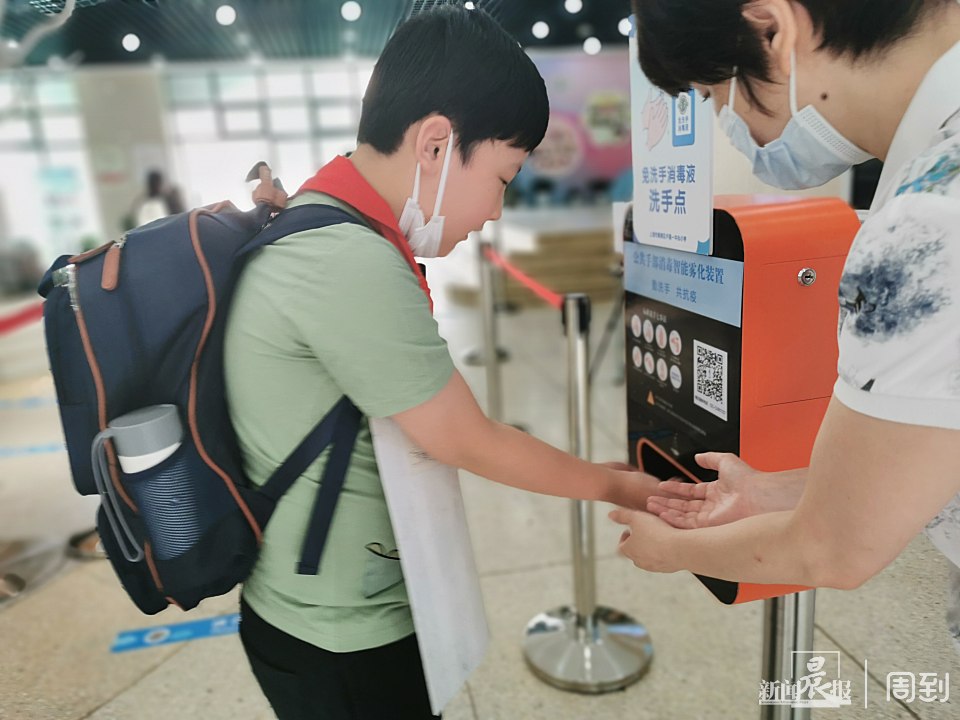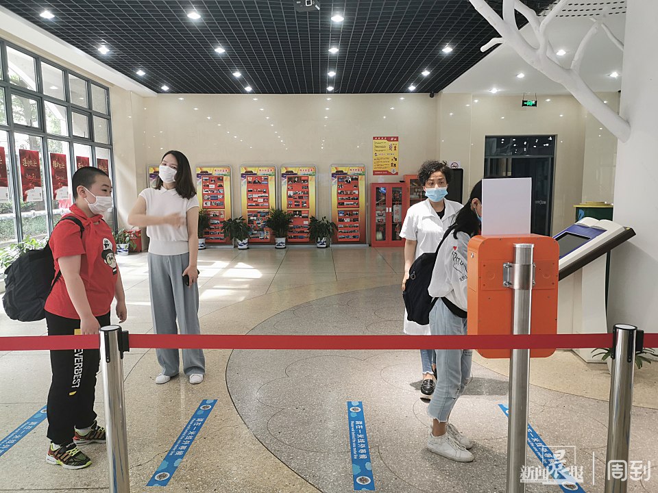 大厅内进行校内第一次检测体温、手部消毒。↓
