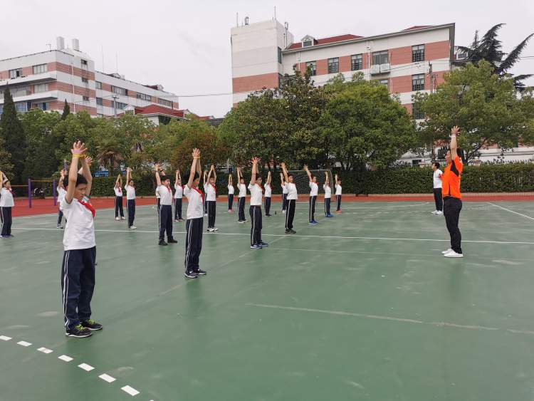 很久没练,体育课孩子们的动作不整齐,老师不断在纠正!丨返校开学日 杨青霞 2020-5-18 来源:周到上海 今天(18日),上海中小学又有5个年级进入地面课堂啦!今天新开学的年级分别有:小学四、五年级,预初、初一和高一。至此,上海中学所有年级全部开学复课。而小学今天迎来第一批开学的孩子,6月2日进入全面开学。新闻晨报•周到记者今天现场蹲点,给大家带来第三波的开学资讯。 🏫:长宁实验小学 9:30,四一班35位学生,来到操场,开始第二堂时长35分钟的体育课。 这堂课的内容为体姿修复课。学生们跟着老师的动作甩动双手和双臂,由于许久未上体育课,老师不断纠正学生错误的动作。 体资课修复课是长宁实验特色校本课程,通过一系列拉伸活动,激活肌肉力量,唤醒居家学习期间学生沉睡已久的身体。 每个动作做完,老师都会让学生原地休息一会,再开始下一个动作。 学生们的动作很不整齐,一直由三名老师在后方不停地纠正。 来源:周到上海 作者:杨青霞 赞一个 (0)