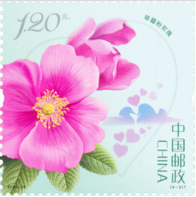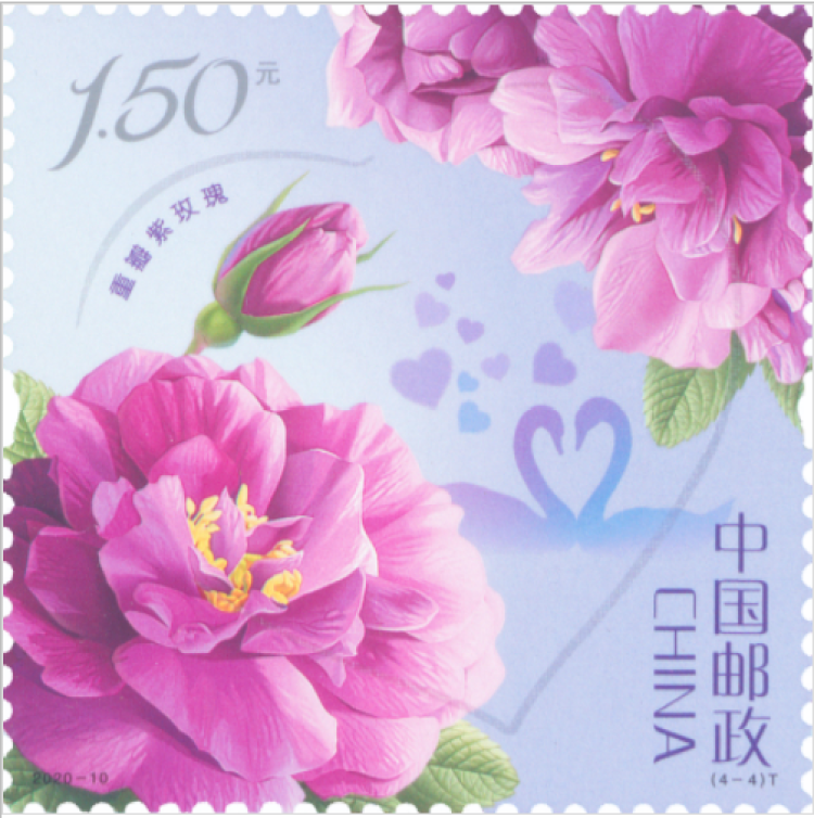 中国邮政定于2020年5月20日发行《玫瑰》特种邮票一套4枚。邮票图案名称分别为:玫瑰、单瓣粉玫瑰、重瓣白玫瑰、重瓣紫玫瑰,全套邮票面值为5.40元。另外,本次邮票计划发行数量为,套票890万套,大全张105万版。