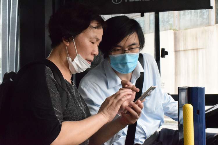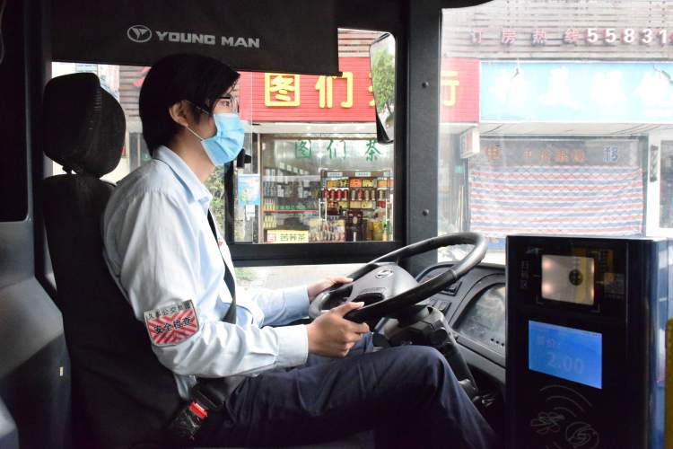 “学生专车”在终点站停下后,王师傅只是休息了片刻,便马上投入普通班次的工作中。这时,一位阿姨上了车,但对手机支付不太熟悉,王师傅便耐心讲解了起来……