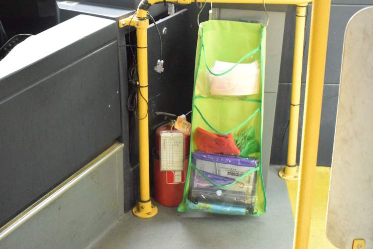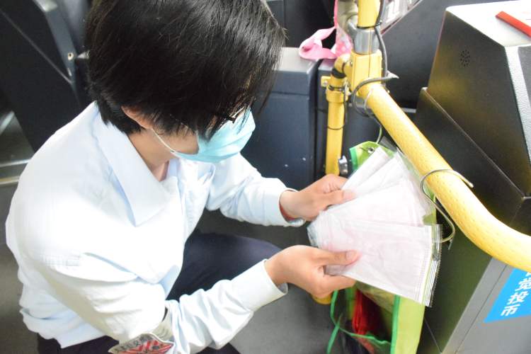 驾驶员王栩鸣告诉记者,为了迎接今天的返校开学,他早早就到岗了,第一件事就是把暖心袋挂好。“疫情期间的暖心袋除了红领巾、雨伞等,我们还配有口罩、手套、免洗洗手液、消毒湿巾等应急物品。”