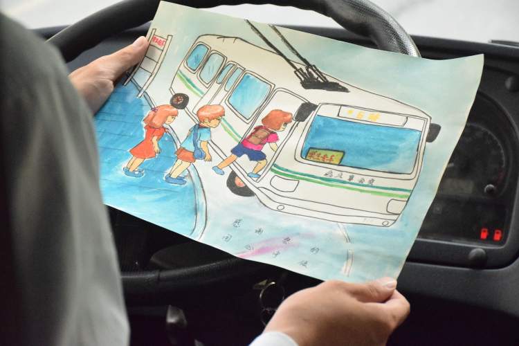 “感谢您的用心守候”,存志中学预备班学生潘紫宸一上车,就送给了王师傅一张手绘画:画上画着标志性的“辫子”、“学生专车”标牌…潘同学之前了解到“学生专车”在开学前做了很多暖心准备,希望能通过这样的形式向驾驶员和公交公司表达谢意。