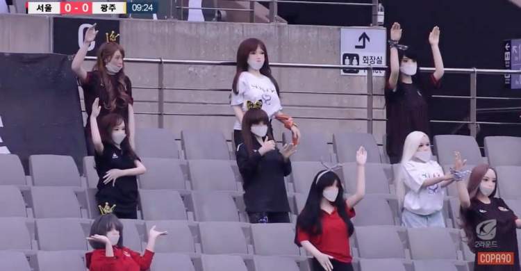 在首尔FC与光州FC的比赛中,为了营造气氛,看台上出现了一群用充气假人所做的“观众”。值得一提的是,这群“球迷”还遵循防疫政策,佩戴口罩并保持了社交距离。