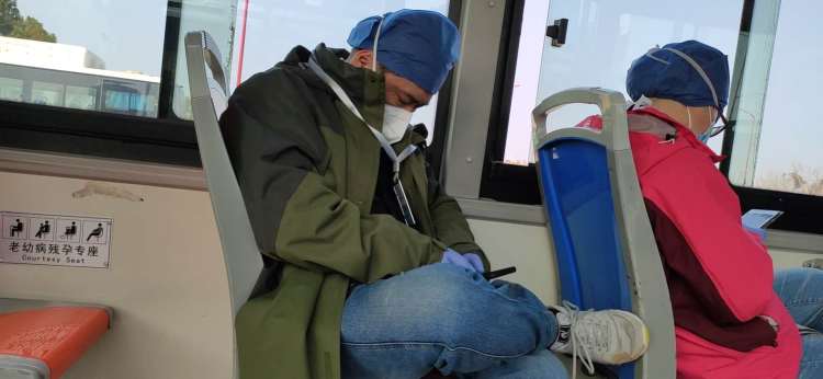 累了,就倚在墙角稍做休息;饿了,就匆匆扒拉两口盒饭;每天从驻地酒店前往医院的路上,有40多分钟的车程,也是他们难得的休息时间。