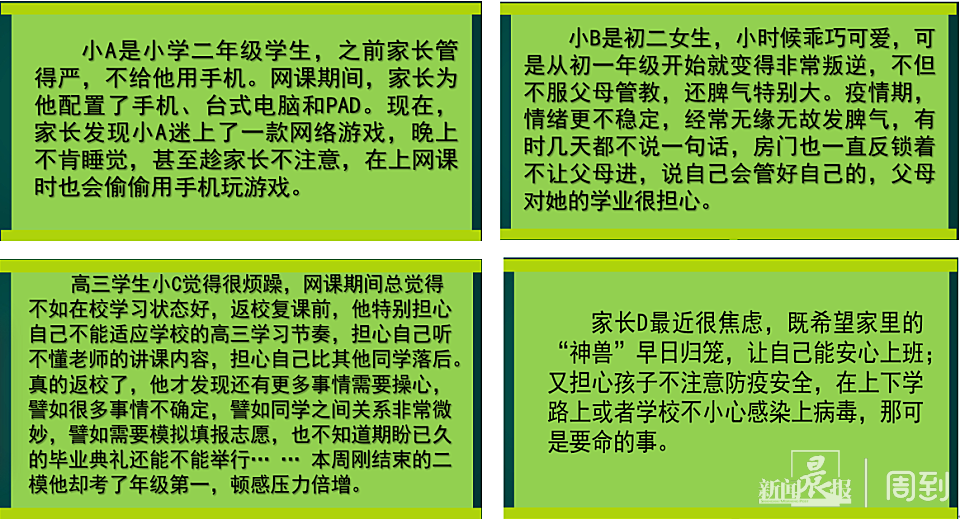 通过4个不同年龄段孩子的案例、5组冲突矛盾关系,张晓冬老师分析孩子在返校复课前后的身心状态以及家长的焦虑。