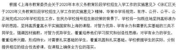 但贝贝妈也有担心,“万一真被华育摇中了,进去孩子跟不上怎么办?”,不过,华育中学的那则声明,多少给了她一些安慰。华育中学提出了“分层教学”的理念。在该校发布的2020年招生简章中称:“学校对智力优异、学有余力和需要扎实基础的三类不同学生,强调因材施教。对智力优异学生,着重培养他们学习探究和创造性思维;对学有余力的学生,着重培养兴趣,形成特长;对需要扎实基础的学生,着重巩固和扎实基础。”