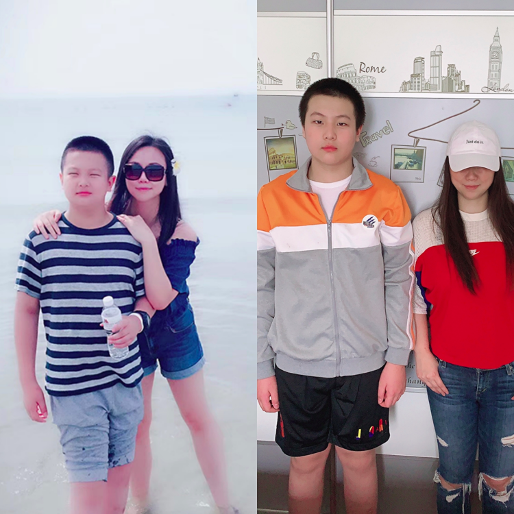 11岁的朱鸿铭的相对身高长的更猛,足足高了6公分,从1米52长到1米58,胖了20斤。鸿铭妈妈笑称,儿子就像“吹气球”一样的长大了,小脸明显圆了,身上也肉嘟嘟的。