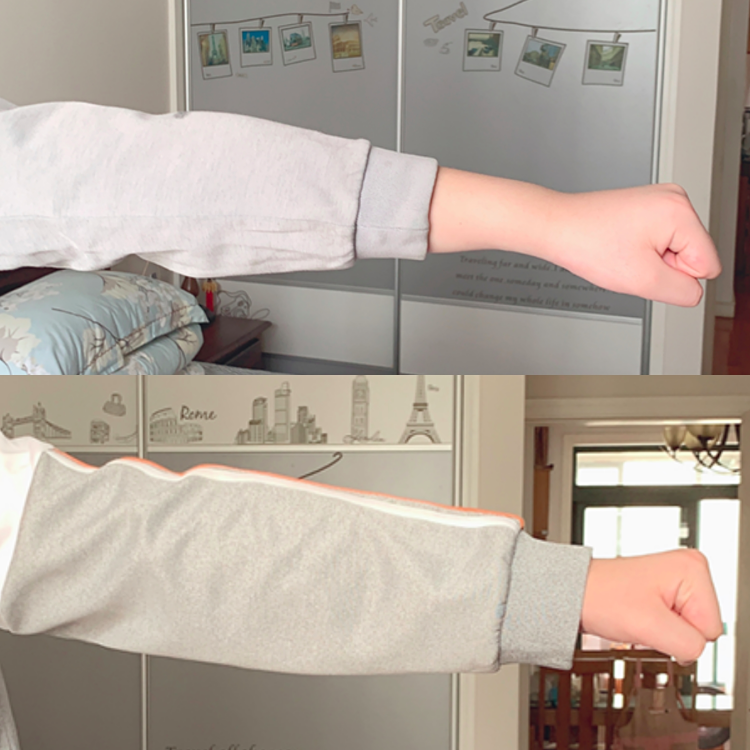 1米68身高的妈妈,在五年级的儿子面前突然显得“小鸟依人”,开学前的这几天,哲瀚妈妈发现儿子的校服袖子短了一大截,套上身后紧紧包着身子。