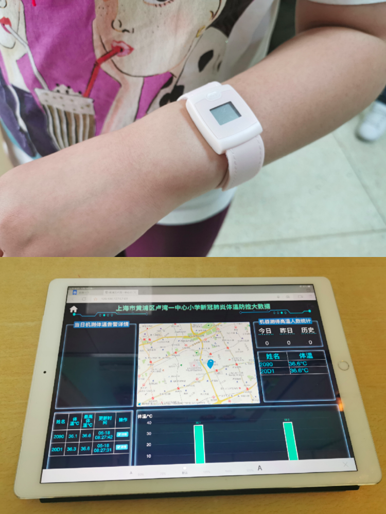对于前段时间有出游经历,且居家隔离已满14天的孩子,学校还为这些返校的学生们配备了“测温黑科技”云手环,可实时监测学生在校期间的体温情况,数据统一集中至相关负责老师的终端,每两秒更新一次数据。