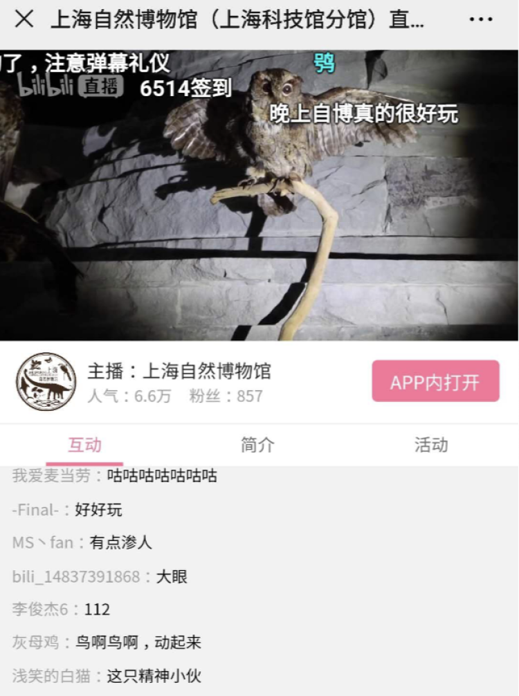 这不是想象,而是5月18日晚上,上海自然博物馆博物馆之夜的精彩内容。为了庆祝今年的国际博物馆日,上海自然博物馆与bilibili弹幕网合作,推出了博物馆奇妙夜直播活动,这也是上海自然博物馆全新视频品牌“螺说频道”的直播首秀。