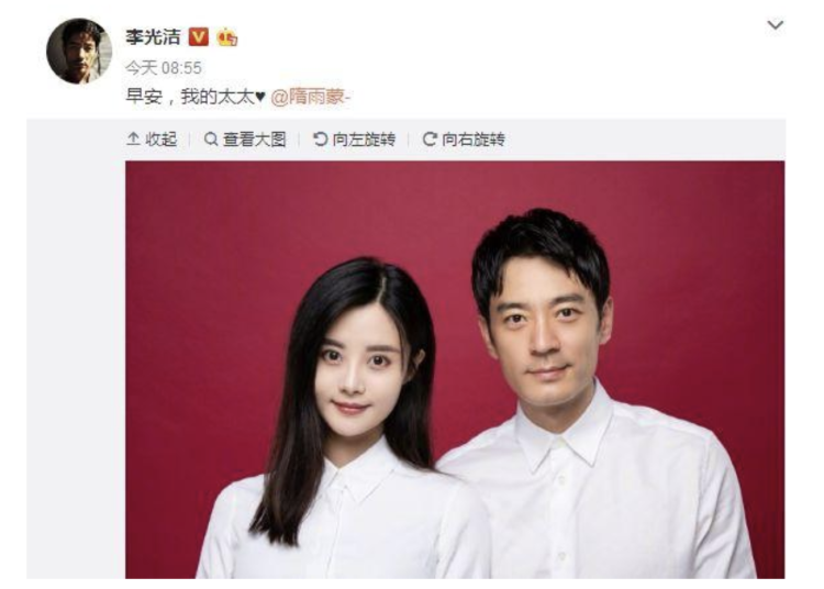 而就在同年,李光洁宣布结婚,其妻隋雨蒙是乔欣中戏的同学,曾在《欢乐颂》《琅琊榜》中打过酱油。