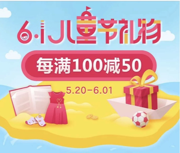 当当网6.1儿童节礼物每满100减50。