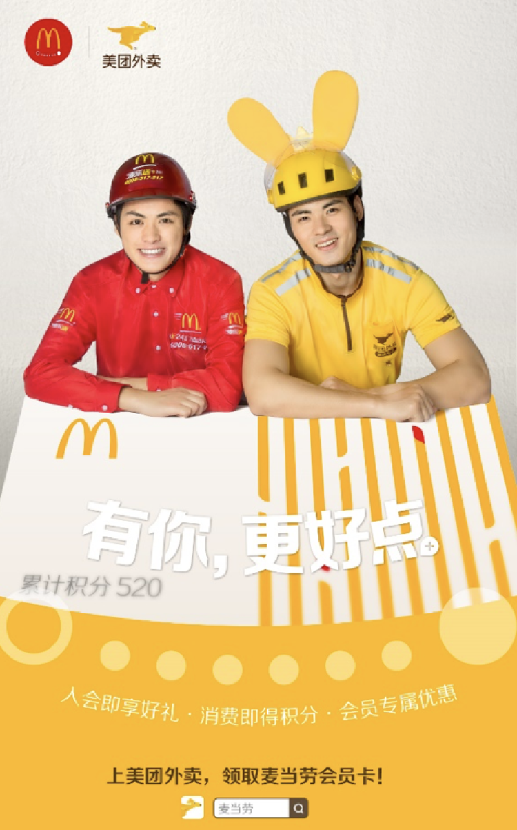 麦当劳中国品牌拓展总裁庞琦女士表示:“美团外卖是中国领先的外送服务平台,也是麦乐送最重要的业务伙伴之一。我们非常高兴可以把麦乐送的会员福利和数字化体验延伸到更多平台上,让更多顾客随时随地体验到麦当劳的美味及优价。”