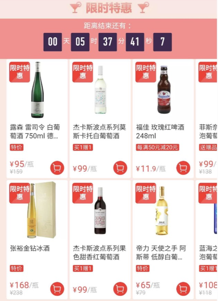 “520甜水节”,购买酒饮限时特惠,有特价、买1赠1、每满50元减20元等多种优惠方式。