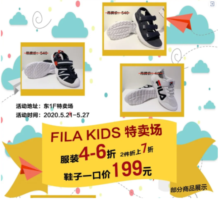 百盛优客城市广场从5月21日起启动了“开学季特卖会”,东1F就将持续7天开设FILA KIDS特卖场~鞋子一口价199元,服装都在4-6折,买2件还能折上7折。