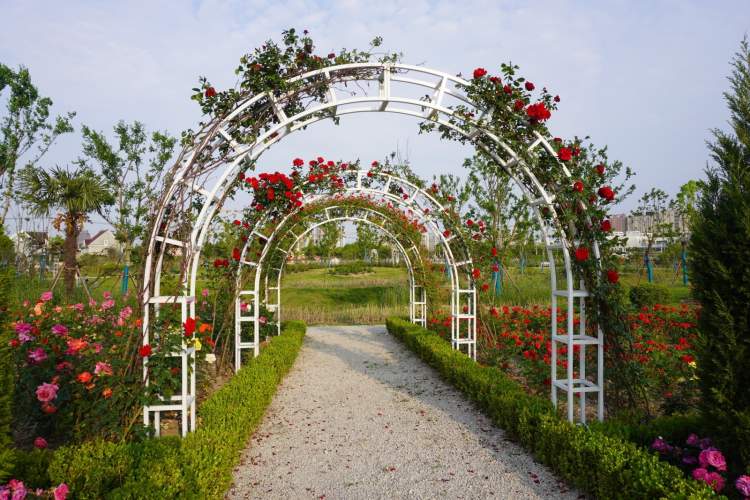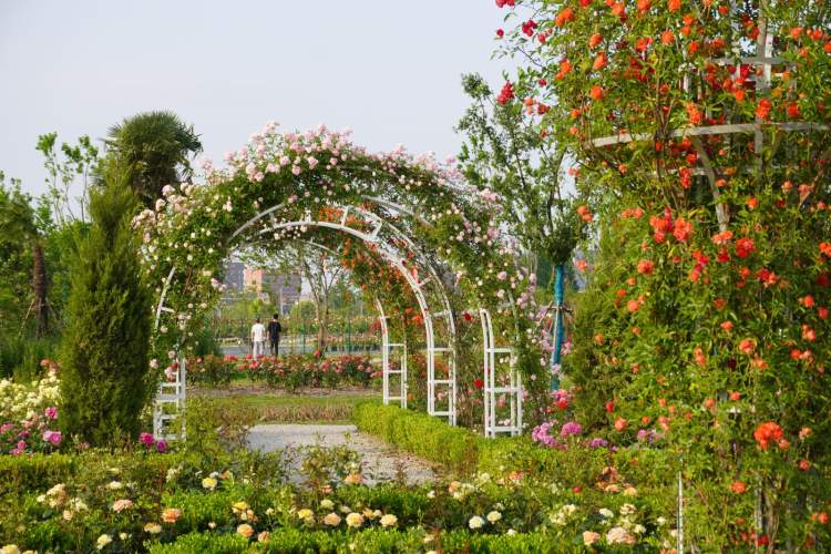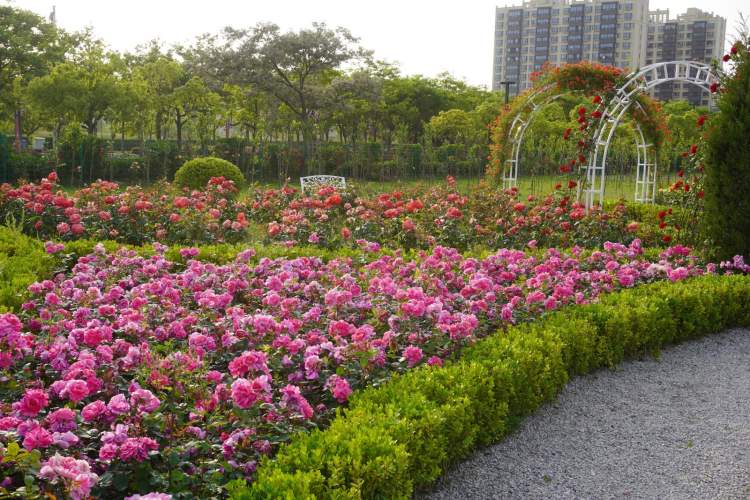 位于立跃路、浦锦路的 “花好月园”总占地面积120亩,拥有大花月季、丰花月季、微型月季、树状月季、地被月季、藤本月季、切花月季七大系列150个精优月季品种,有红、黄、粉、橙等6个色系。全园有花境观赏区、月季观赏区、水生植物观赏区、休闲运动区和休闲草坪区五大功能区域,为周边居民提供了休憩、健身、游玩、赏景的好去处。