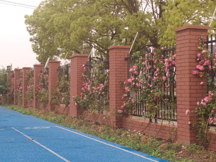 今年,为了让更多老百姓享受到月季的美,浦锦街道开始结合单位立体绿化进行了月季花墙试点,分别在上师大三附小及浦江天主堂种植了1.8米的安吉拉月季共计700株,目前初见成效。