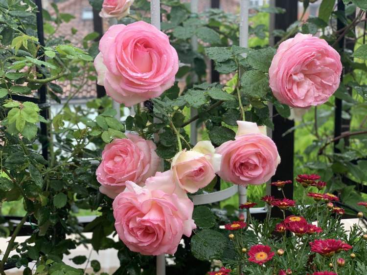 不仅在公园绿地和道路,月季也成为越来越多浦锦居民的心头好,他们纷纷把月季种在自家的庭院里、阳台上,精心呵护,静待花开。