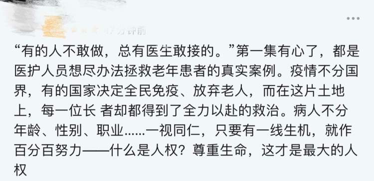40分钟的时间里,镜头对焦在武汉同济医院光谷院区,在上海华山医院整建制接管的ICU里,上海和武汉的医护人员,协力帮助新冠肺炎患者与死亡赛跑。