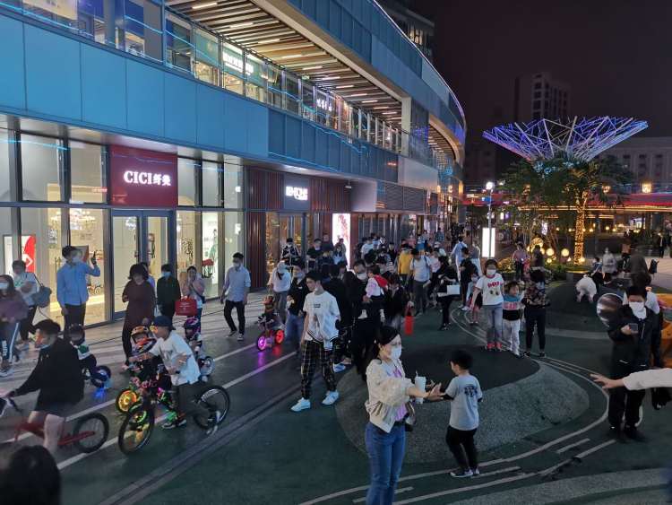 很多消费者都会在闲暇之余,带着孩子在大融城的户外空间散步、玩耍。
