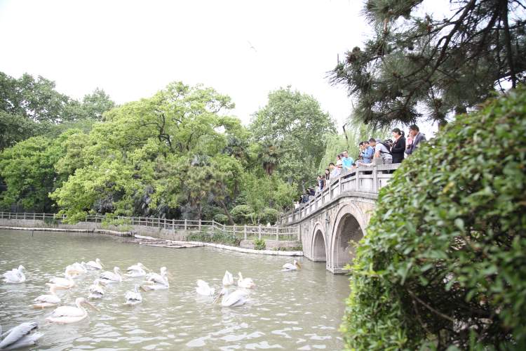 游客早上入园后,来到天鹅湖的3孔桥畔就能看到鸟区的鹈鹕喂食。鹈鹕喂食较之传统的喂养方式,饲养员采用抛喂的方式进行喂食,这样更接近其在野外的集群捕食方式。随着哨声响起,近30只鹈鹕聚集在三孔桥下,游客可以清楚地看见鹈鹕张开的“大嘴”。饲养员撒下鱼后,大部分鹈鹕能准确地把鱼在空中接住,如果鱼落在水中,鹈鹕会将整个喙直插入水中,寻找目标,只剩尾部和双脚竖在水面,野性又有趣,场面颇为壮观。