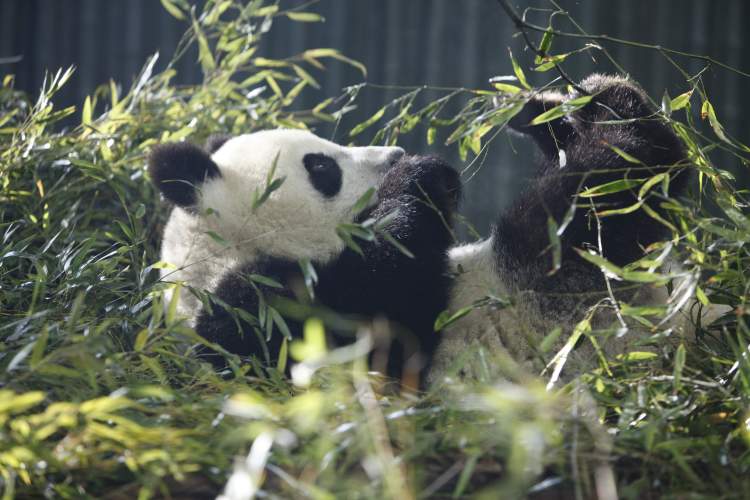 食肉区的明星动物自然是大熊猫“风光兄弟”(和风、星光)啦,我们的国宝们只要在那里吃吃吃就行了,自然也会吸引粉丝无数。咦,除了竹子外,是什么让大熊猫如此为“轮胎”而疯狂?原来饲养员把刚榨的橙汁,涂在了轮胎上,轮胎里又藏了几根笋。为大熊猫宝宝准备的这份隐藏大餐,其实这也是一种食物丰容,是为提升动物生活质量的一种尝试。“嗯,这味道我喜欢,这笋更有味道了。。。我吃不到这笋,不达目的不罢休!”大熊猫宝宝此时的内心独白。这样“吃播”你怎能错过?