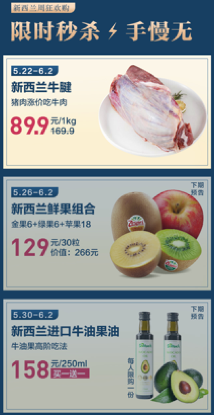 疫情当下,消费者更加注重饮食均衡和身心健康,在选购食材时对品质诉求更高。因此,本来生活网新西兰美食周期间,主打品质食材,为全民提供“健康力”。