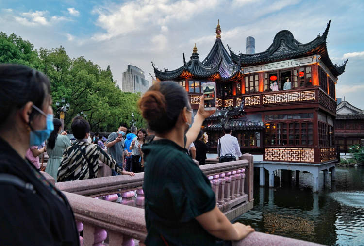 一大早,先到豫园的南翔馒头店吃小笼包,到湖心亭喝杯早茶,在晨间的阳光下漫步于九曲桥和豫园花园内;