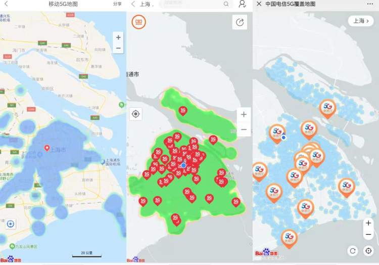 ■中国移动、联通、电信的 5G 覆盖地图