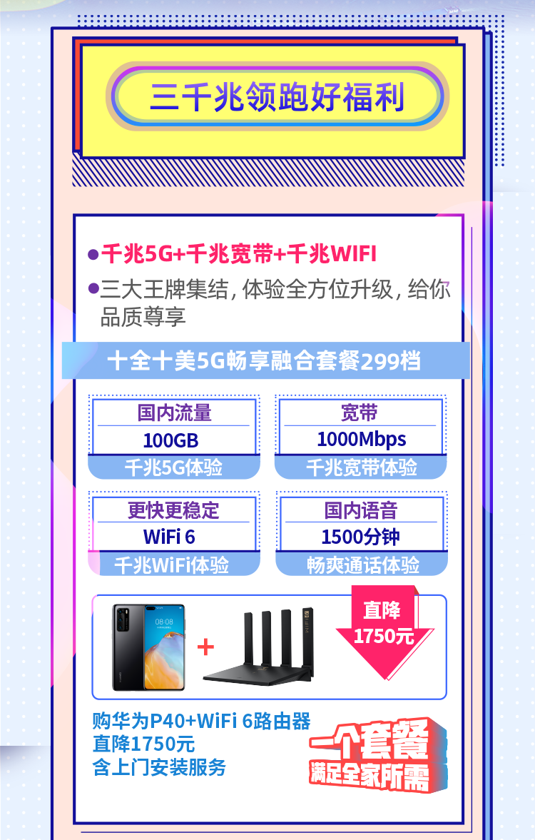 三千兆:千兆宽带+千兆 5G+千兆 WiFi