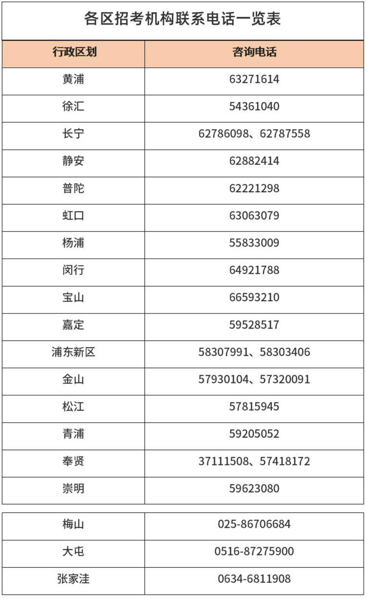 具体安排请提前咨询学校或区招办。以下为各区招考机构联系电话: