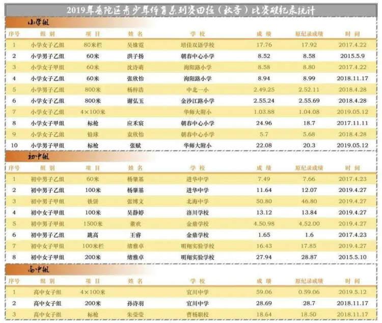 了解2019年普陀区青少年体育系列赛田径比赛破纪录