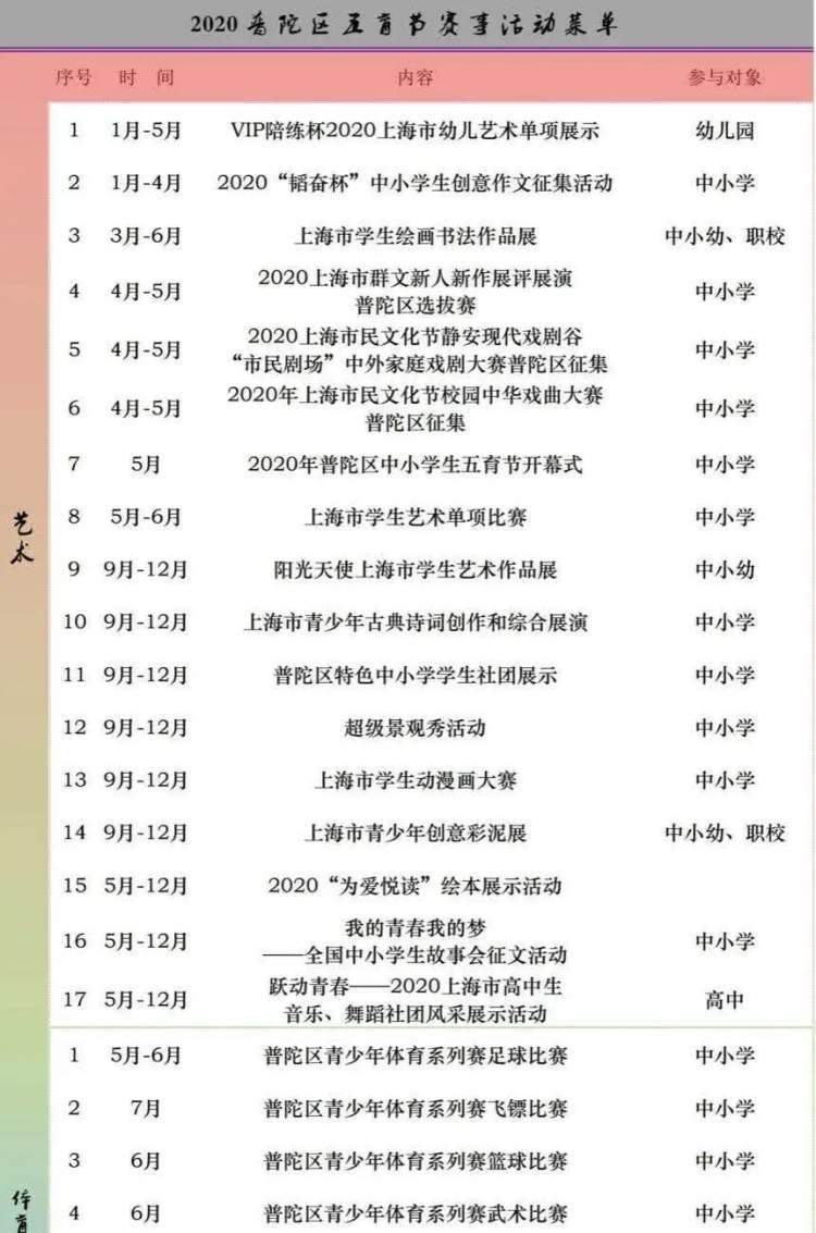 2020年“五育节”五大类54项市级、区级线上线下活动和赛事