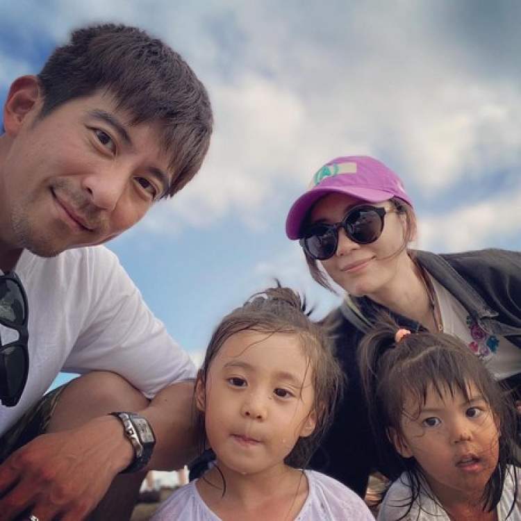 另一位艺人贾静雯,在儿童节前一天上传了一家四口的照片。