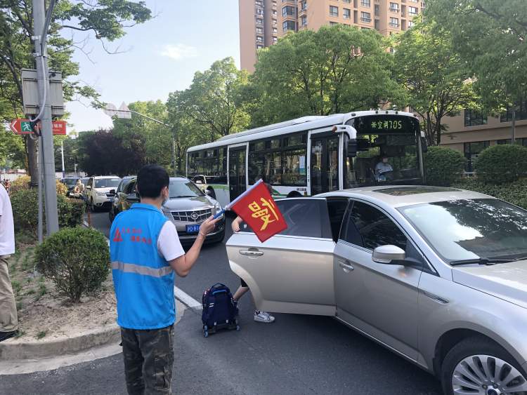早晨7点,巴士五公司七车队特意安排志愿者和现场管理人员,来到705路平型关路公交终点站附近的大宁国际学校,进行站点驻站引导和客流观测,提醒驾驶员经过学校路段时“一看二慢三通过”。