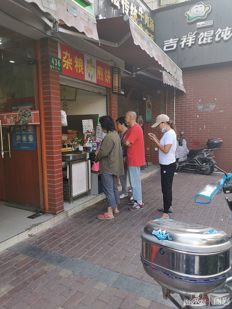 七点五十分左右,不少低龄年级家长在学校附近排队帮孩子买早饭,她们互相说道:“孩子还没起床呢”。↓