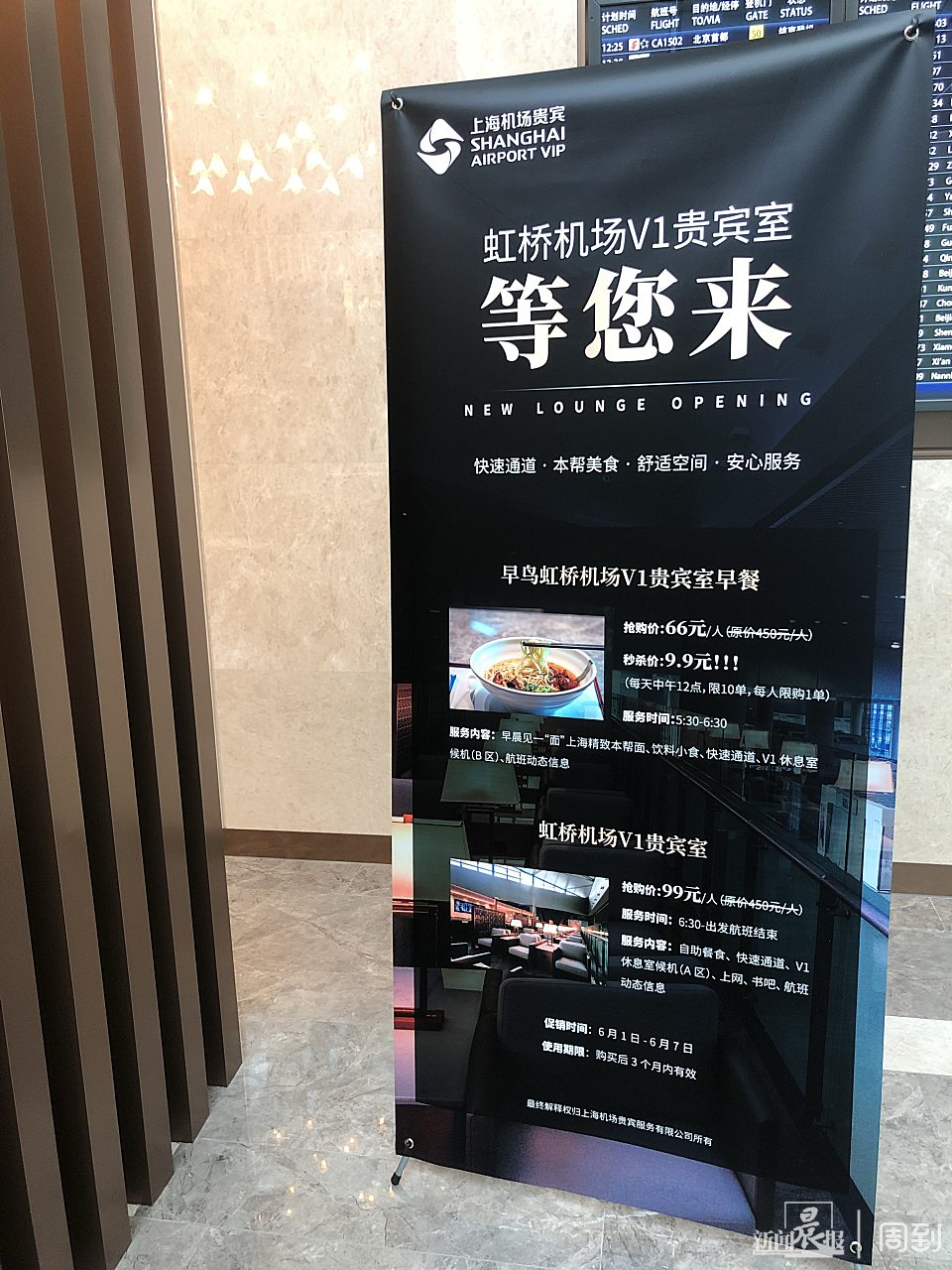 6月1日-7日,每天中午12点,在“上海机场贵宾服务”的小程序时,还可以9.9元限量秒杀原价为450元的早鸟餐,可在每天早上的5:30-6:30期间前来V1贵宾室B区,餐食包括现煮浇头面、上海特色小吃和饮料小食。
