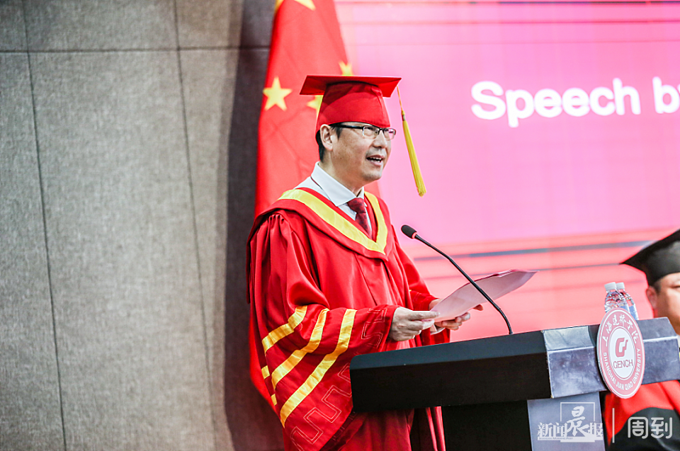 6月28日,在上海建桥学院2020届毕业典礼上,校长朱瑞庭寄语毕业生们,有路,就要大胆去走;有梦,就大胆飞翔。只要未来一天没有来,人生就一天充满期待。有期待,人生便值得。