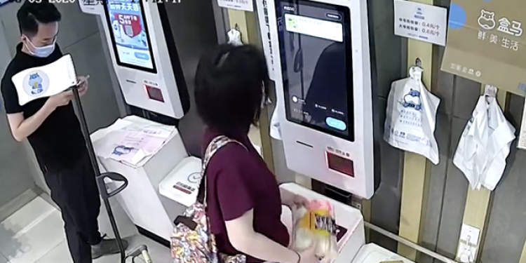 超市管理人员怀疑可能有人在超市行窃,在查看店内监控后,发现有一名女性在自助付款时,未将商品的二维码对准收银机扫描口,而是装模作样地一晃而过,造成漏扫,然后将未计价商品混到已付款商品中带出超市。