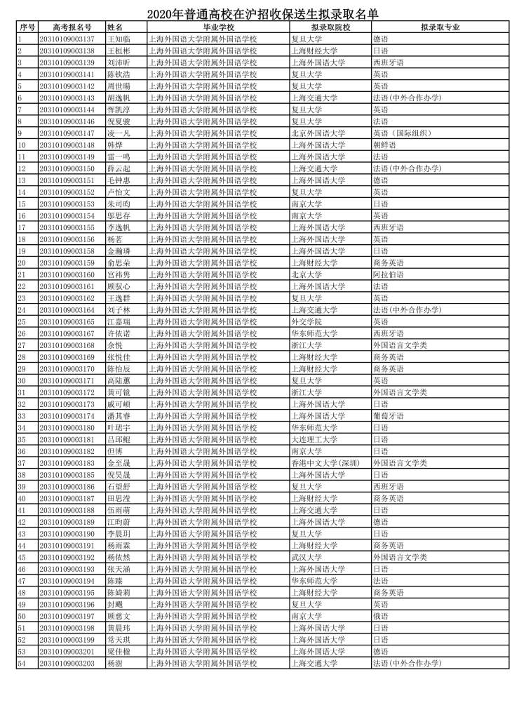 一类是教育部认定的有保送生推荐资格的外国语学校推荐的保送生。上海有两所外国语学校具备保送生推荐资格,分别是上海外国语大学附属外国语学校(简称上外附中)和上海外国语大学附属浦东外国语学校(简称上外浦外)。