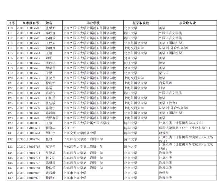 今日(6月29日)晚间,上海市教育考试院公示了,2020年普通高校在沪招收保送生拟录取同学名单。共计有139名保送生拟被包括清华大学、北京大学、复旦大学、上海交通大学等高校录取。