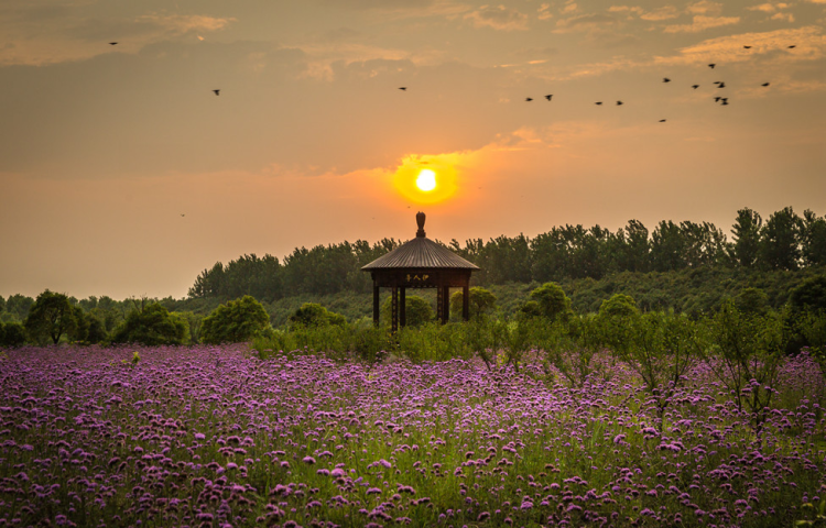 水波荡漾,清风徐来,万鸟集聚,草木繁盛,更有紫色的马鞭草摇曳生姿,目之所及都是浅浅深深的紫色,美得令人心醉不已。当微风轻拂而过时,花海还会如波浪般层层叠叠地起伏着,更显壮观!